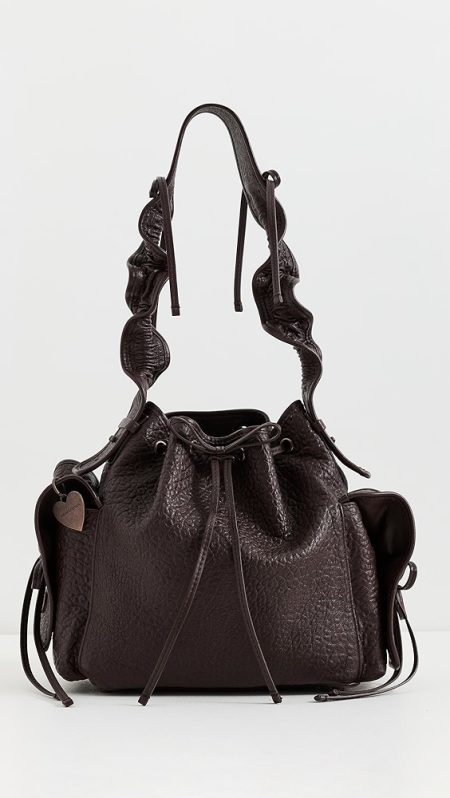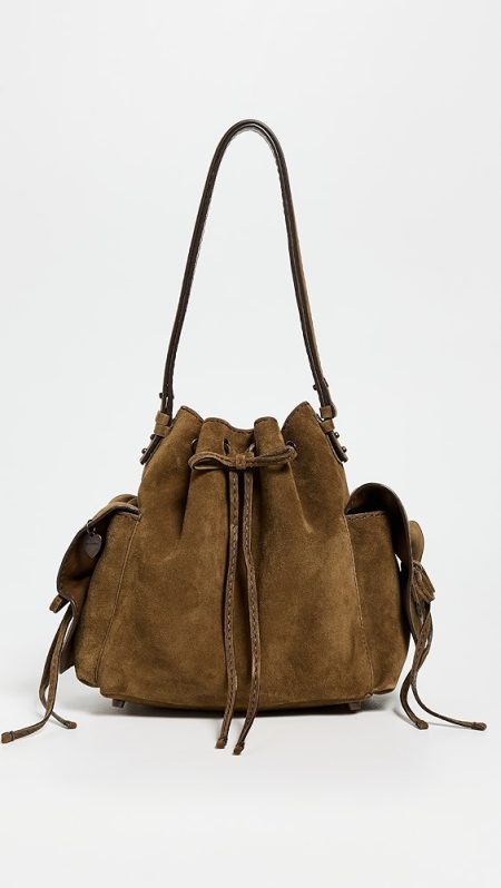 Calfskin Removable zip pouch Silver-tone hardware Open top Adjustable strap Lining: Leather Weight: 29oz / 0.82kg Made in Italy Style #PROSH20903 Proenza Schouler's Brant Bucket Bag in Soft Suede is crafted from luxurious calfskin leather, featuring a removable zip pouch, silver-tone hardware, and an adjustable strap. This versatile handbag offers…